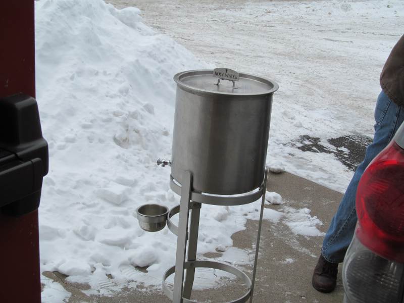 The Holy Water dispenser is already being put to use at Transfiguration