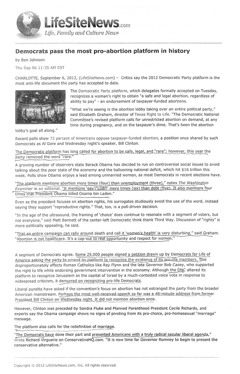 Talk about telling truth to power! New York's Cardinal Archbishop, Timothy Dolan, faced down the lions in their den when, standing before the assembled delegates at the Democratic Party's national convention-the very same delegates who had just overwhelmingly cast their vote in support of "gay" marriage and taxpayer-funded abortion without restriction, half of them having voiced moreover their fierce opposition to reintroducing into the language of the party's platform the reference to God that had previously been excised - he vigorously reasserted in his closing benediction our Founding Fathers' rock-solid conviction that God and God alone is the source of our "unalienable" rights. Cardinal Dolan boldly defended the inviolable right to life of those "waiting to be born, that they may be welcomed and protected," while with manifest allusion to Kathleen Sebelius' Health and Human Services mandate, a mandate that calls for the Church's active complicity in evil, he proclaimed the urgent need to maintain "RELIGIOUS liberty, the FIRST and most CHERISHED freedom." And with implied repudiation of the delegates' demand that homosexual liaisons be clothed with the dignity and status of marriage, he emphasized the importance of "respecting the LAWS of nature and of nature's God" and of resisting "the temptation to replace the moral law with idols of OUR OWN making, or to REMAKE those institutions You have given us for the nurturing of life and community." And the Cardinal brought his prayer to an end with the words: "For we are indeed 'ONE, nation, UNDER GOD, and 'in GOD WE TRUST'. So, dear God,' BLESS America!!