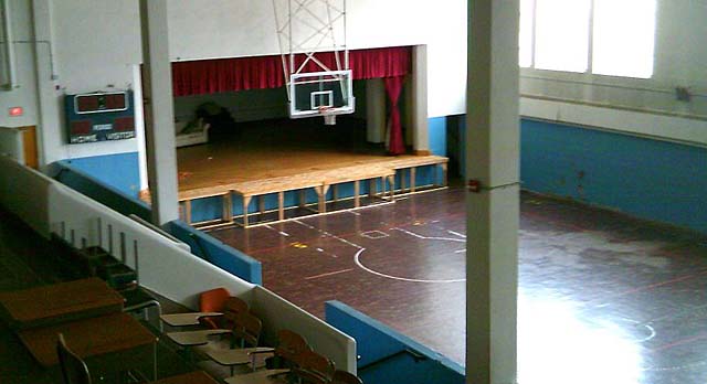 gymnasium, so constructed that it serves as an auditorium as well.